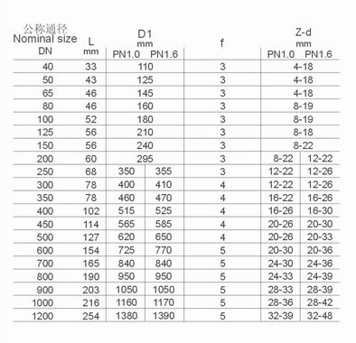 壓力等級(jí):PN(MPa) 1.0 1.6