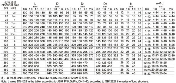 法蘭連接尺寸:JB78、JB79、GB 9113、HG、SH