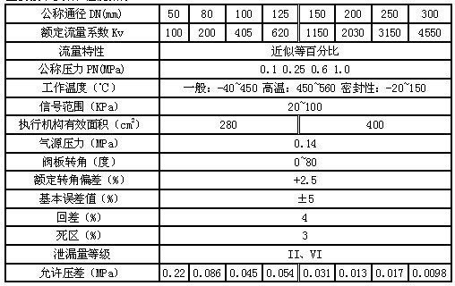 本系列產品有標準型、高溫型及密封型三種。產品公稱壓力等級有0.1、0.25、0.6、1.0MPa,口徑由50mm至1400mm,泄漏量等級有II級和VI級,流量特性為近似等百分比。