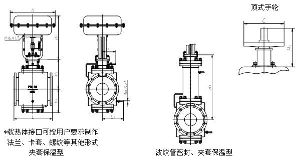 ZXNJ型調節閥帶有保溫夾套,用于流體冷卻后易結晶、凝固造成堵塞的場合。