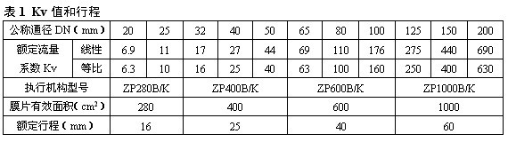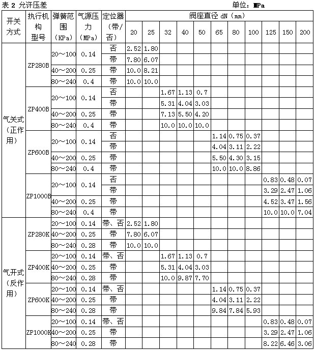 注 1)對于ZXMW型套筒波紋管密封調節閥,最大允許壓差為1.0MPa,表中數據若數值小于1.0MPa則不變,